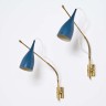 Angelo Lelli (1911-1979) Paire d'appliques Métal laqué et laiton Edition Arredoluce Date de création : vers 1950 H 55 × L 21 × Ø 9 cm