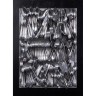 Accumulation of metal cutlery on wood panel