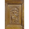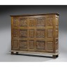 Armoire en chêne ouvrant à six portes, avec trois parties dormantes. Décor de pennes, d’entrelacs géométriques d’inspirations celtiques, et de personnages sous des arcatures, saint-Pierre, deux buveurs, un homme avec un tonneau, deux femmes munies de quenouille, une femme à la baratte ; charnières en fer forgé. Datée 1628 sur une traverse.