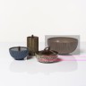 Arne Bang (1901-1983) Trois pots couverts Céramique émaillée et cuivre Signé du monogramme Date de création : années 1960 H 9 , 14 , 9 cm