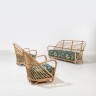 Arne Jacobsen (1902-1971) AJ 237 Ensemble d'un canapé et de deux fauteuils Bambou, tissu d’origine Edition Nissen E.V.A Co, Copenhagen Date de création : circa 1950 Fauteuils : H 78 × L 68 × P 72 cm Canapé : H 78 × L 165 × P 58 cm Modèles présentés à Charlottenborg, Spring exhibition 1937 Bibliographie : - Revue: Nyt Tidsskrift for Kunstindustri, no. 9, 1937. - Carsten Thau & Kjeld Vindum: "Arne Jacobsen", 1998 p. 267.