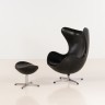 Arne Jacobsen (1902 - 1971) Egg Chair Fauteuil et ottoman Cuir et aluminium Edition Fritz Hansen & co. Date de création: 1957 H 106 × L 87 × P 70 cm H 42 × L 55 × P 38 cm Bibliographie : - C. Thau & K. Vindum " Arne Jacobsen " Editions The Danish architectural Press - Copenhague 2001. Modèle similaire reproduit en couleur p. 471-472. - Arne Jacobsen, cat. expo. Dansk Mobel Kunst, Danemark, Sangill Grafik Produktion, 2002, p.50-51