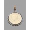 Magnificent religious medal in 18k yellow gold adorned with a Virgin in profile on white agate in a double entourage of calibrated sapphires and probably fine pearls