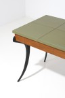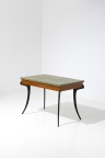 Desk Teak, bronze, and leather Bears a label and a stamp Model created in the 2000s H 73 × W 102 × D 66 cm