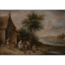Attributed to Théobald MICHAU (1676-1765) Landscape with two women Oak panel, monogrammed DT on the lower right 22 x 31 cm