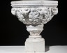 Bénitier en marbre blanc de forme octogonale à décor de feuillages. Dans le style italien du XIVe siècle H 62 cm – L 56,5 cm (support rapporté)
