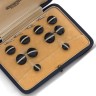 BOUCHERON. Années 1929-1930. Parure de smoking en or jaune 750‰ et platine, onyx et diamants taillés en rose. Elle se compose d'une paire de boutons de manchettes, quatre boutons de plastron et deux boutons de col. Non signée, numérotée 30335 et poinçon de MO. Poids brut : 16,7 g Dans l'écrin d'origine
