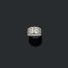 Bague chevalière de dame ornée de deux diamants taille ancienne épaulés par des plus petits diamants. Monture double anneau godronné en palladium rehaussé de diamants sertis clos (égrisures). Années 1935-40. Tdd : 52 Poids des diamants du centre : 1,30 à 1,60 carat environ chacun.