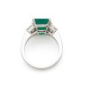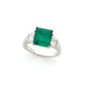 White 18k (750‰) gold ring adorned with an exceptional rectangular beveled emerald, approx. 3,78 carats, set between two diamonds Ring size : 54,5 Gross weight : 6,7 g With a certificate from SSEF Laboratory n° 133144 dated 09/10/2023 indicating: Origin: Colombia Color : green of medium strong saturation Treatments: Minor amount of oil in fissures at the time of testing