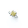 18k (750‰) white gold ring adorned with 2,02 carats Fancy Intense Yellow radiant-cut diamond, surrounded by baguette-cut diamonds