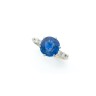 18k (750‰) grey gold ring, adorned with a cushion Burmese sapphire (3 carats approx.), and three round-cut diamonds
