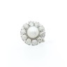 18k (750‰) white gold ring adorned with a cultured pearl surrounded by ten round-cut diamonds, vintage cut Ring size: 50 Gross weight: 7,3 g