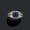 Bague en or jaune 18K (750‰) centrée d'un saphir taille ovale calibrant 4,1 carats environ, épaulé de lignes de diamants taille tapers, baguette et carré. Tdd : 58. Poids brut : 7,17 g. Origine du saphir : Birmanie, sans modifications thermiques. Accompagné de son certificat GCS n° 78147-93 du 20/03/2018.