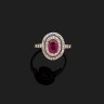 Bague en or jaune 18k, 750‰ et platine 850‰ ornée d'un rubis ovale dans un double entourage de diamants taillés en rose Années 1910. Poids brut : 3,5 g Dans un écrin Aucoc Accompagné d'un rapport d'analyse du LFG n° BD013837/1 du 08/12/2016 attestant : rubis traité, chauffé avec remplissages