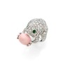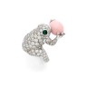 La Fiorente Gioielli, Capri 'Frog' ring in 18k white gold (750‰) entirely set with brilliant cut diamonds, holding a conch pearl, two round emeralds as eyes Probably Italian production Ring size: 55 (adjustor) Gross weight: 16,4 g Provenance: Major private collection With an Paris LFG laboratory certificate, n° 410319 dated 28/05/2024, indicating: Semi-perforated natural pearl Dimensions: 12,5 x 9,8 x 9 mm approx. Color: clear pink Luster: porcelain No indication of treatment With a certificate of authenticity