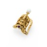 Indian ring in openwork yellow gold with deities and adorned with a bezel-set ruby (small chip) and a cultured pearl. Ring size: 50 Gross weight: 6,6 g