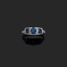 Bague jarretière en or gris 750‰, centrée d'un saphir ovale épaulé de saphirs calibrés. Monture ornée de diamants (petite déformation). Années 1920-1930.