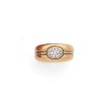 Bague jonc bombé en or jaune 750‰ la partie centrale formée d'un anneau amovible en or gris à motif basculant orné d'un coté d'un pavage de brillants, de l'autre d'un grenat.