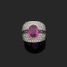 Bague "Jonc" en or gris 750‰ formant deux anneaux pavés de diamants centrés d'un saphir rose ovale calibrant 3,60 carats environ (pi...