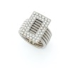 Modernist ring with six 18k (750‰) white gold wires with a belt-buckle shape paved with round-cut diamonds in the center. Ring size: 56 Gross weight: 18,3 g