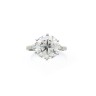 Ring in platinum (850‰) adorned with a round diamond of 5,25 carats, in between two diamonds Gross weight: 5,2 g Accompanied by a preliminary examination of the LFG Laboratory n° BD32137/1 dated 17/10/2022 stating: Colour: F - Clarity: SI1