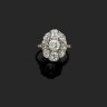 Bague Pompadour ancienne en or jaune 750‰ et platine 850‰ centrée d'un diamant taille ancienne calibrant 0,95 carat environ, dans un entourage de diamants calibrant ensemble 2,60 carats environ.