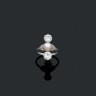 Bague rivière en platine (850‰) et or gris 14K (585‰) ornée d'une perle fine entre deux diamants taille brillant calibrant 0,80 carat environ chacun. Tdd : 50 Poids brut : 4,9 g Accompagné d'un certificat du LFG n° 336824 du 04/05/2018 pour la perle.