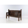 Carved and moulded pine bench with three seats, the arm supports with turned colonnettes. Spanish work from the 17th century H 121 x W 196 x D 52 cm