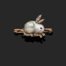 Barrette "lapin" en or jaune 375‰ rehaussé de diamants taillés en rose, le corps en nacre, un petit rubis pour l'oeil.