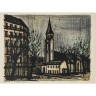 Bernard Buffet (1928 - 1999) Paris - 10 lithographies Poèmes de Charles Baudelaire Paris, A. Mazo éditeur, 1962 Album in-plano (730 × 550), en feuilles, sous portefeuille toilé beige à rabats, fermé par des rubans Composé d'une page de titre, d'une de justifiation, de la table des illustrations, du texte de Charles Baudelaire et de 10 lithographies en couleurs, chacune signée et numérotée 73/150 L'album comporte les planches suivantes : "l'île Saint Louis", "la place des Vosges", "le point du Jour", "la porte Saint Martin", "St Germain des Prés", "la Tour Eiffl", "le Pont des Arts", "le Sacré Cœur", "le Pont de la Concorde" et "l'Arc de Triomphe". Edition à 150 exemplaires, celui-ci numéro 73 Superbe exemplaire en très bon état Sorlier 31 à 40