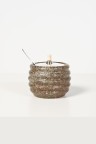 Covered pot Glazed stoneware and silver for the lid and the spoon by Hans Hansen Monogrammed Creation date: 1937 for the ceramic and 1938 for the lid H 10.5 × Ø 10 cm