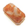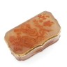 Rectangular box with fretwork edges in sculpted agate with flower pattern on the lid and the bottom. Yellow gold mounting, ET hallmark
