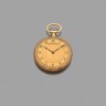 Montre de col en or jaune 18k (750‰) ornée d'un monogramme émaillé. Cadran rond à fond doré et guilloché, chiffres arabes peints, aiguilles en acier bleui.
