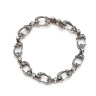 Bracelet ancien en or 750‰ et argent 800‰ composé de maillons formant des volutes sertis de diamants taillés en rose alternés de roses couronnées.