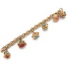 Bracelet in 18K yellow gold (750‰) with fancy links, both smooth and guilloché, holding six charms adorned with coral and hard stones in tassel. Length: 22 cm Gross weight: 67,5 g