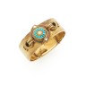 oval belt buckle shape (approx. 0,60 carat) adorned with black enamel, cabochon turquoises and likely