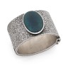 Opening cuff bracelet in guilloche silver Bracelet (925‰) adorned with an oval cabochon of labradorite Diameter: 6,5 cm - Height: 4,4