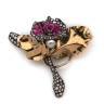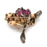 ART NOUVEAU brooch in the form of an orchid in 14k yellow gold (585‰) and silver set with red stones and rose-cut diamonds, a probably