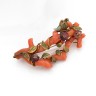 Broche "branche fleurie avec couple d'oiseaux" en or jaune 750‰ partiellement émaillé, corail et opale. (Petits accidents au corail).