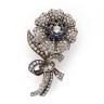 18k (750‰) gold and silver "Flower" brooch entirely paved with old-cut diamonds and enhanced in the centre with round sapphires Century