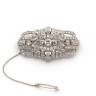 Art Deco plate brooch in platinum set with round and baguette-cut diamonds, including one more important in the center French production Dimensions : 5,3 x 3 cm Gross weight : 17,8 g