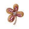 Four-leaved clover brooch in 18k (750‰) yellow gold, finely chiseled, petals adorned with round rubies, stem and pistil with diamonds Dimensions: 6,5 x 5 cm Gross weight: 27,8 g