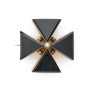 Broche/pendentif "Croix de Malte" ornée d'onyx taillés en triangle en serti dentelé, au centre une demi-perle probablement fine entourée d'un filet d'émail noir