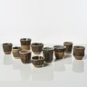 Bruno Gambone (né en 1936) Ensemble de dix tasses Grès émaillé Pièces uniques Date de création: 2000 - 2005 H 10 x Ø 9,5 cm H 7,5 x Ø 8 cm H 7,5 x Ø 7,5 cm H 8 x Ø 7 cm H 7,5 x Ø 7 cm H 8 x Ø 10 cm H 5,5 x Ø 8 cm H 8,5 x Ø 9,5 cm H 9 x Ø 7,5 cm H 8,5 x Ø 9 cm