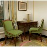 Desk 74 x 88 x 60 cm, two chairs 88 x 48 x 46 cm and bronze lamp H 62 cm