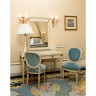 Writing table, 76x120x65 cm, mirror, 107x80 cm, two armchairs, 94x50x50 cm, and a lamp, H 85 cm