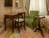 Louis XV style desk, 79x102x52 cm, chair, 85x40x35 cm, armchair, 85x69x70 cm, round side table, H 69 x D 45 cm and mirror