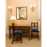 Writing table, 70x110x57 cm, a mirror, 57x69 cm, two chairs, 85x40x47 cm, a lamp, H 56 cm