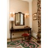 Writing table, 75x152x46 cm, a mirror, 107x75 cm, a gilded wooden chair, and a lamp, H 78 cm