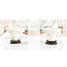 CHINE - Époque KANGXI (1662 - 1722) Deux coupes libatoires pouvant former paire en forme de corne de rhinocéros à décor en relief appliqué de tigre et dragon sur une face et grue et pin sur l'autre. H 7,8 cm L 14 cm Socles en bois